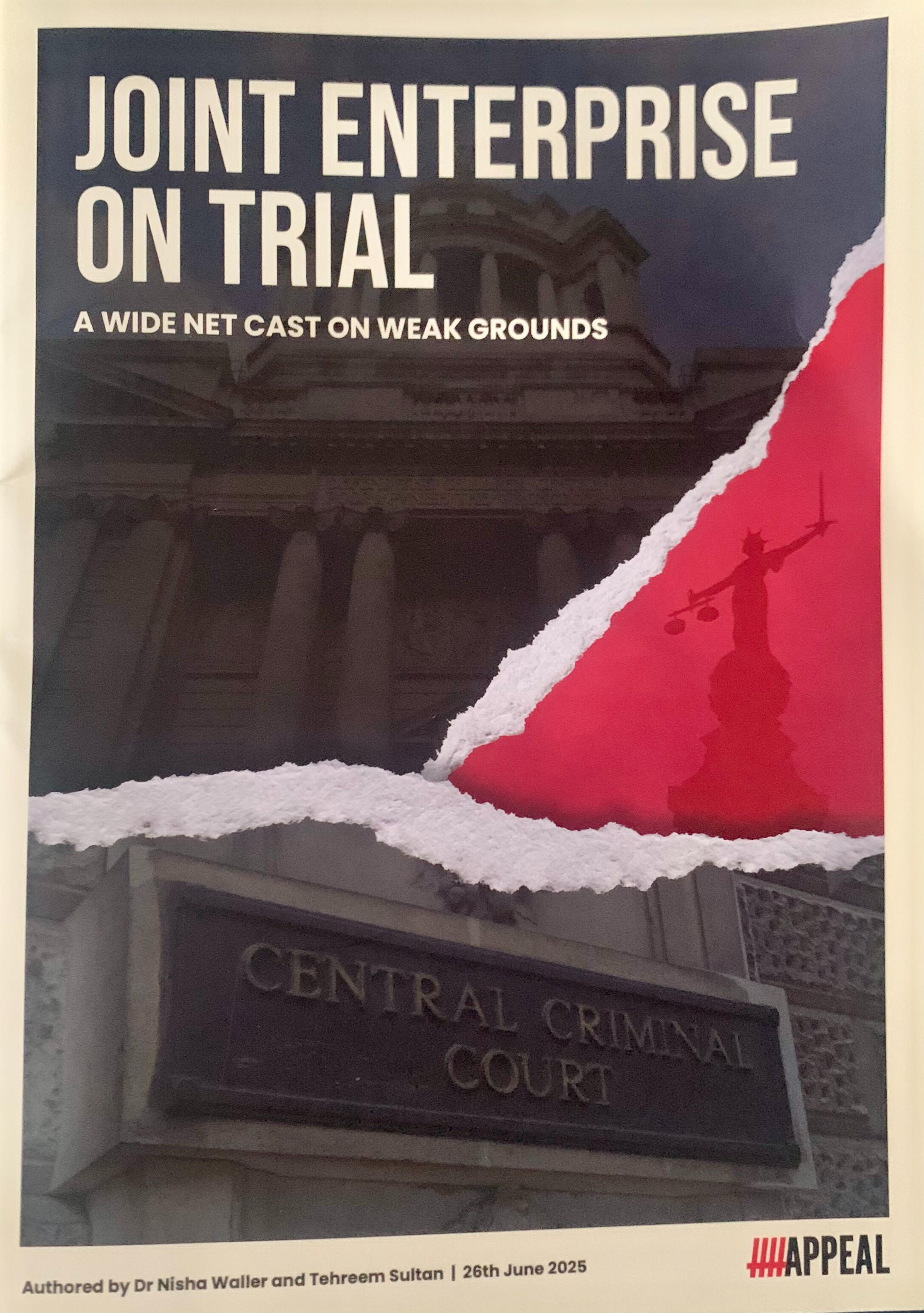 I want to thank Dr Nisha Waller & Tehreem Sulton from APPEAL, for the 6 Month they were at the Old Bailey on a court watch focusing on Joint Enterprise cases, where they observed 17 murder and attempted murder trials, one of which was my Son and his Co-D's. The study documents and analyses how secondary liability is applied in high-stakes prosecution.