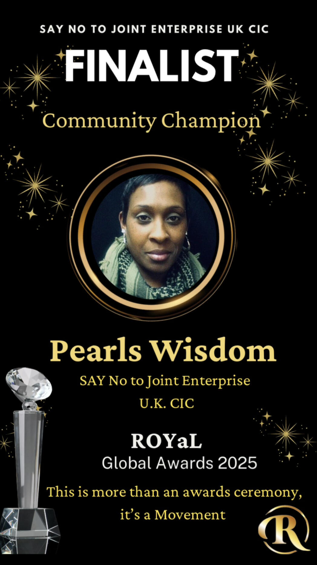 What an honour to be nominated, and be a finalist as a Community Champion by ROYal (Raising Our Youth As Leaders) Global Awards Of Excellence for the work i have been doing within my community where young people and their families are concerned. It is not only a passion, but also my purpose, to see the young people and my community prosper. This is why i do what i do....for the Youth!
